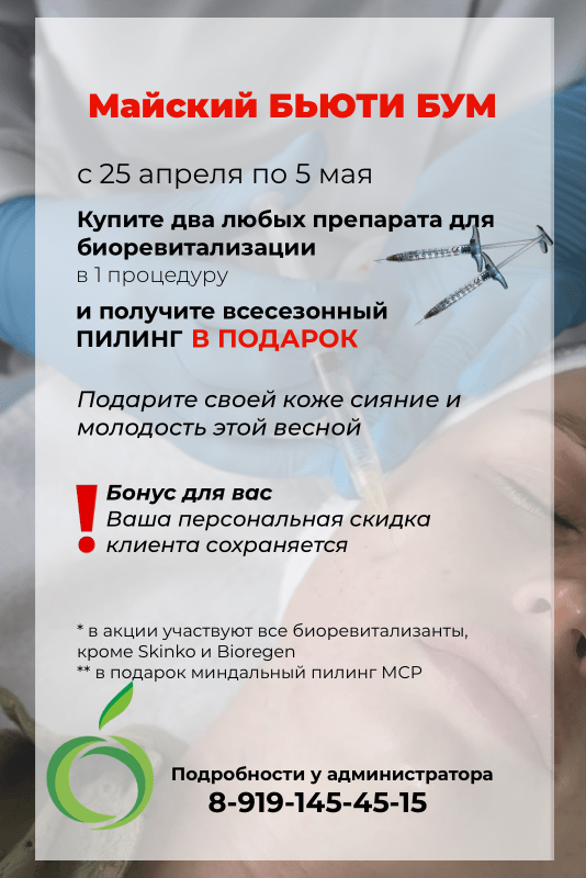 Майский Бьюти Бум! Биоревитализация + пилинг в ПОДАРОК