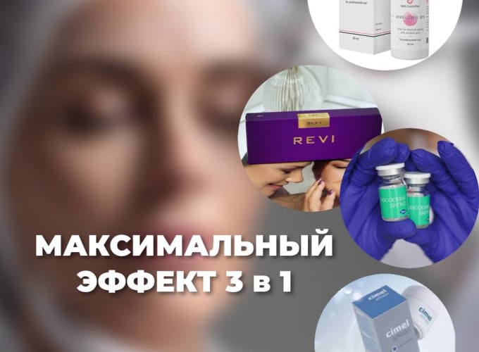 Комплекс процедур "Максимальный эффект 3 в 1" : Миндальный пилинг + Биоревитализация + желтый пилинг - СКИДКА до 35%